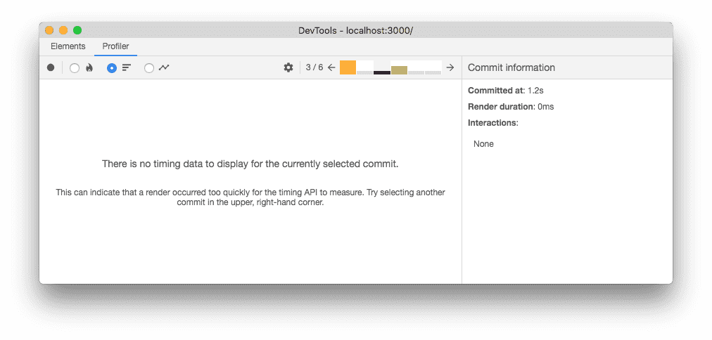 Sometimes a commit may be so fast that performance.now() doesn’t give DevTools any meaningful timing information. In this case, the following message will be shown: